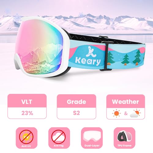 Keary Kids Ski Goggles for 3-14 Snowboard Goggles Kids Toddler Boys Girls Youth Snow Goggles 100% UV Protection Anti-Fog