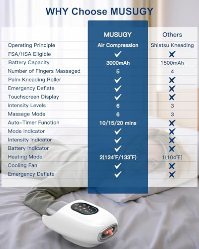 Hand Massager with Heat and Compression : Full Hand and Wrist Comfort Massage - 6 Modes & 6 Intensity with Touchscreen Control - for Daily Relaxation (White)