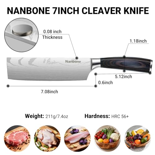 Nakiri Knife 7 Inch Sharp Meat Cleaver and Vegetable Kitchen Knife Damascus Asian Chef Knife for Home and Kitchen with Ergonomic Handle High Carbon Stainless Steel knife Chef Cooking Gift