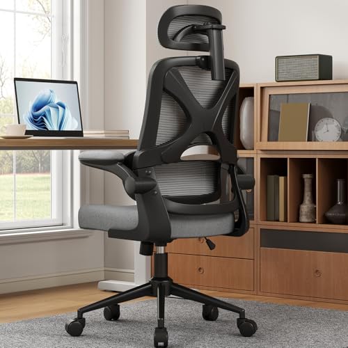 Ergonomic Office Chair - Desk Chair with Adjustable Headrest Lumbar Support Computer Chair - Mesh Comfy Chair with Flip-up Armrests - Gaming Chairs for Adults Home Office 330 LBS (Black+Gray)