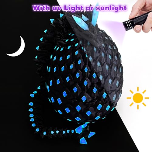 3D Printed Dragon Eggs Mystery with Dragon Inside Glow in The Dark Articulated Animals Fidget Toy Crystal 3D Printed Easter Dragon Eggs for Kids Boys Girls Home Decor Blue