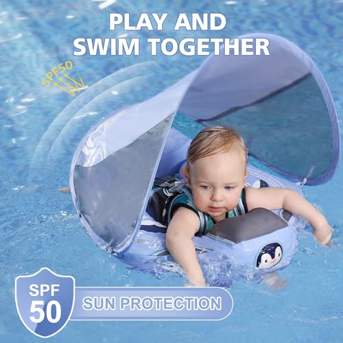Baby Floats for Pool with Canopy Removable Sun Protection Canopy Mambobaby Float Non Inflatable Upgrade Add Tail Avoid Flip Waterproof Skin-Friendly Infant Swim Float 3-24 Months