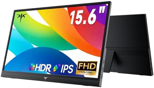 Portable Monitor 15.6-inch FHD 1080P Ultra-Slim Travel External Monitor HDR IPS Gaming Display with Kickstand &Speakers USB-C HDMI Plug&Play,for Laptop PC Phone PS4/5 Xbox Switch