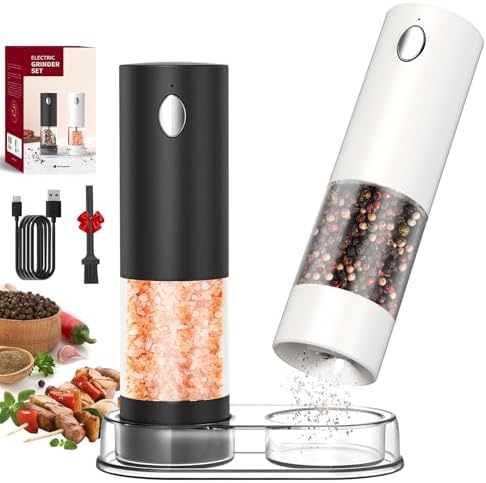 CIRCLE JOY Electric Salt and Pepper Grinder Set Rechargeable Salt and Pepper Mills with Storage Base