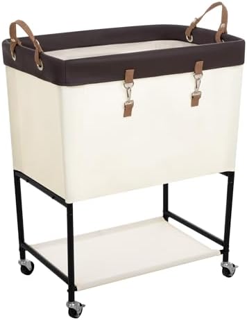 HUANUO Mobile Standing Desk with Wheels and Storage Basket