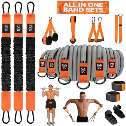 2 in 1 18PCS Heavy Resistance Bands & Assisted Pull Up Bands Combo – 300LBS/225LBS with Non-Slip Handles