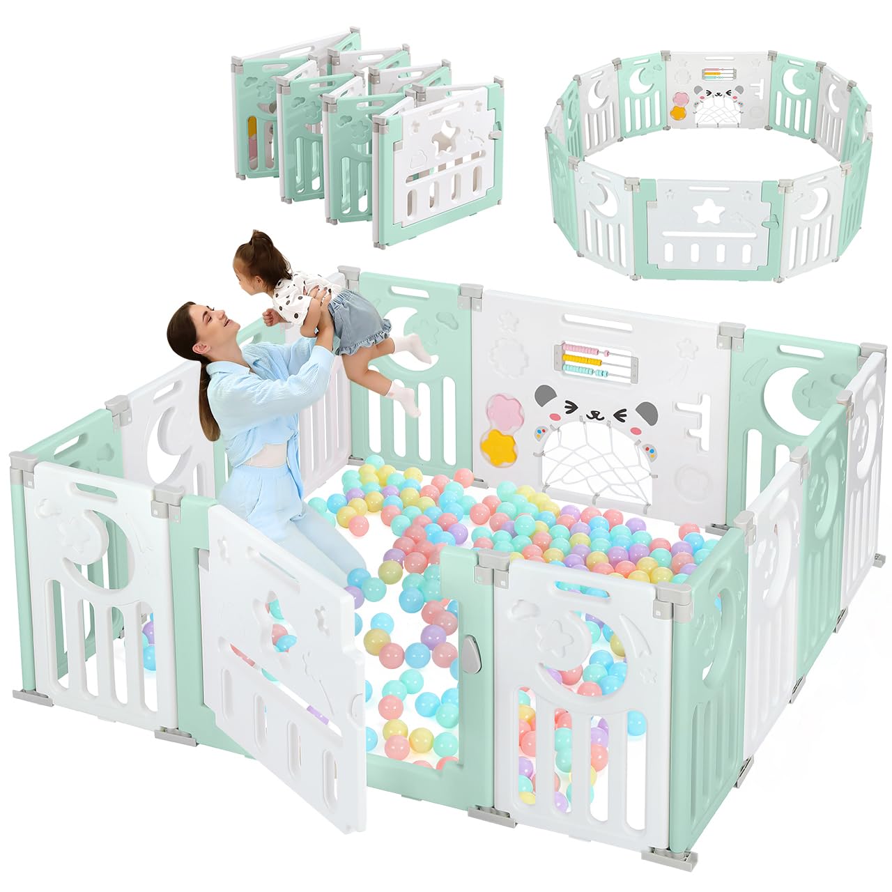 Baby Playpen, Dripex Baby Playard for Babies and Toddlers, 14-Panel Foldable Playpen Adjustable Portable Play Area