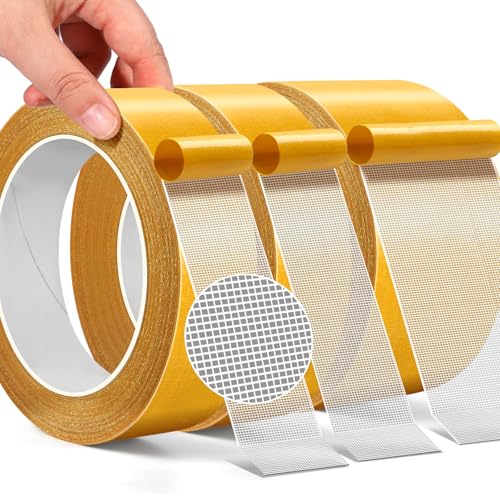 Fabric Tape Multifunctional Double Sided Tape 2 Sided Tape 3 Rolls 1inch/2inchx33FT&1inchx66FT Heavy Duty Carpet Tape with Strong Adhesion