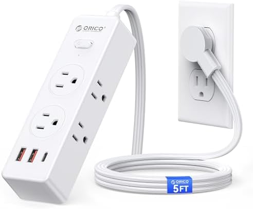 SUPERDANNY 10ft Flat Plug Tower Power Strip with Surge Protection - 8 AC Outlets & 4 USB Ports (1 USB-C) Charging Station