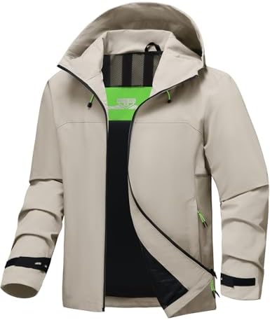 Mens Rain Jacket Waterproof Lightweight Windbreaker Hooded Softshell Jacket for Hiking Travel Outdoor Performance