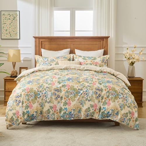 kingrest 100% Cotton Queen Duvet Cover Set - 3 Piece Soft & Breathable Bedding Set