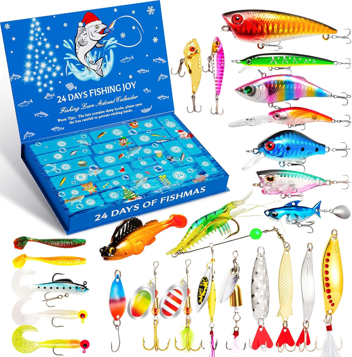 Fishing Advent Calendar 2025, 24 Days Christmas Gifts Countdown Lure Fishing Tackle Kit For Adult Men Teen, Fish Bait Set for Fisherman Boys Friends Boyfriends, Xmas Surprise Gift