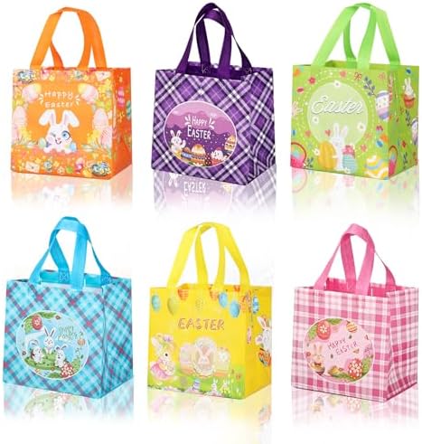Bwhrmt Happy Easter Egg Hunt Bags Bunny Carrot Chick Gift Bags with Handles