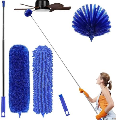 Professional Microfibre Dusters for Cleaning - Extendable 30-81" Cobweb Remover Kit with 3 Washable Heads
