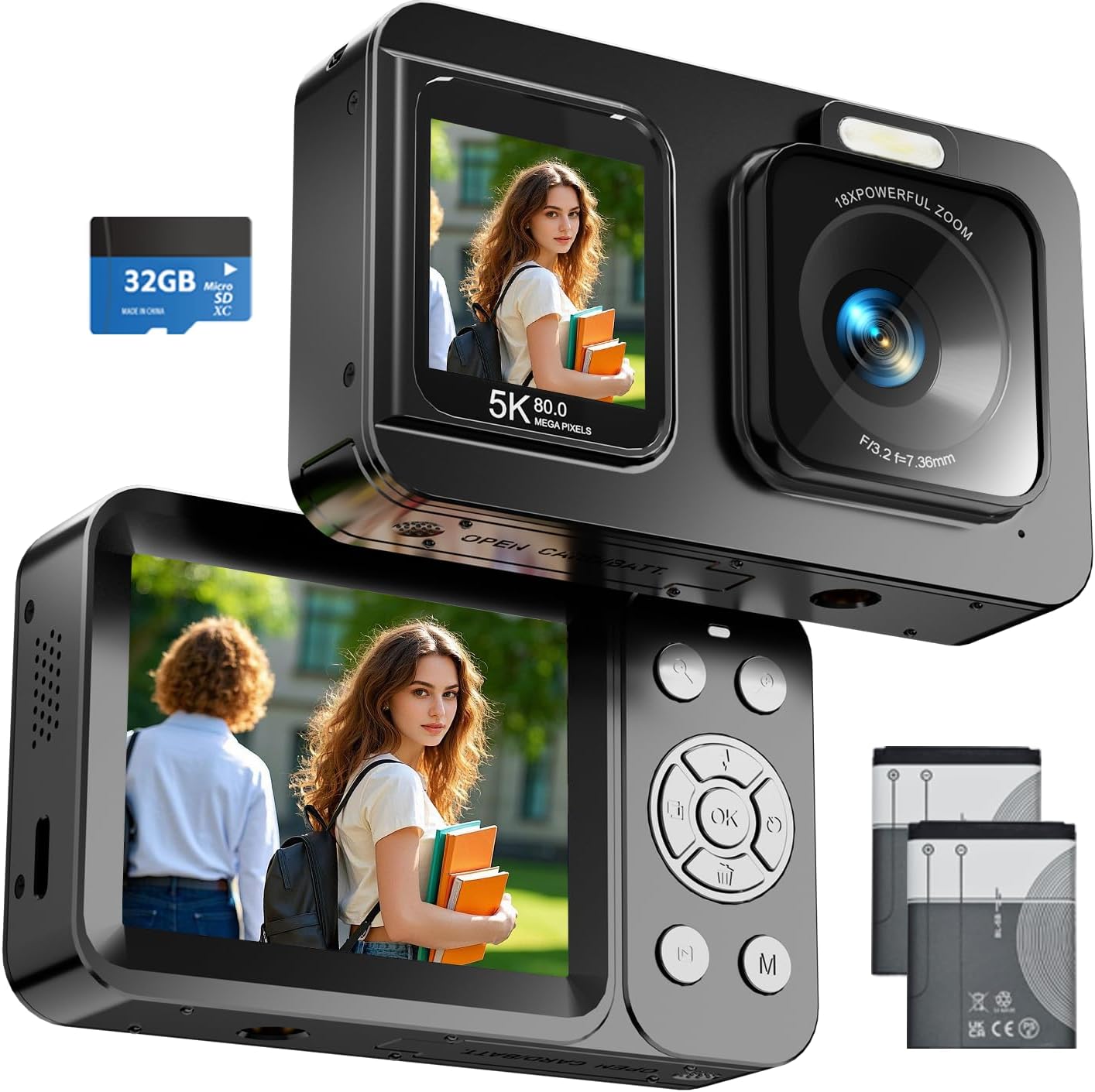 Digital Camera 5K 80MP Point and Shoot Digital Camera for Photography 18X Zoom Anti Shake