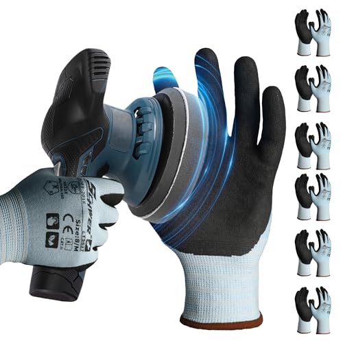 Schwer 6 Pairs Safety Work Gloves with Sandy Nitrile Coating