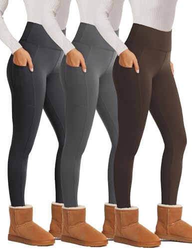 Showitty 3 Pack Fleece Lined Leggings Women with Pockets - Winter Warm Thermal Yoga Pants for Running Workout Plus Size