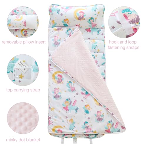 JUNCAI Toddler Nap Mat with Removable Pillow and Plush Blanket