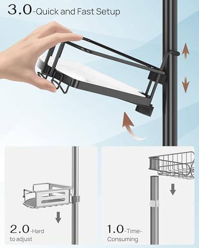 ALLZONE Corner Shower Caddy Tension Pole – Upgraded Rust-Free Stainless Steel Shower Organizer with Adjustable Storage Shelves