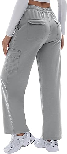 Cargo Sweatpants for Women High Waisted Wide Leg Cargo Pant Baggy Elastic Thicken with 6 Pockets