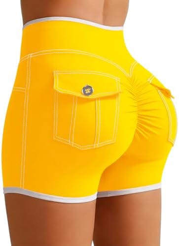 SEASUM Booty Butt Scrunch with Pockets Cargo Shorts V Waist Color & Stitching Gym Yoga Workout