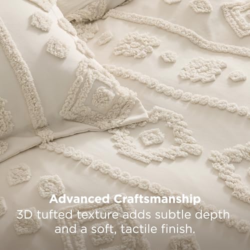 Bedsure Queen Size Comforter Set - Beige Tufted Boho Bed Set