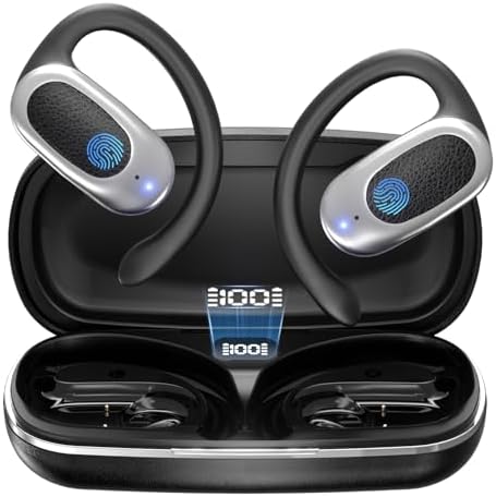 Open Ear Wireless Headphones Air Conduction Earbuds with Mic 42H Playtime Clear Calls LED Digital Display Over Earphones Lightweight Waterproof Secure Earhooks for PC Sports Running Game Business Work
