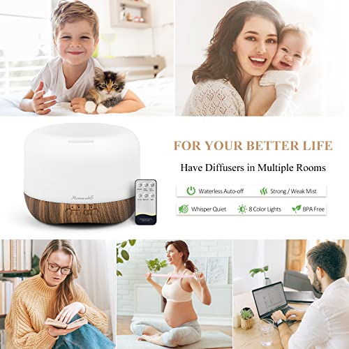 Aromatherapy Essential Oil Diffuser for Room: 500ml Colorful Aroma Air Humidifier with Adjustable Cool Mist Mode