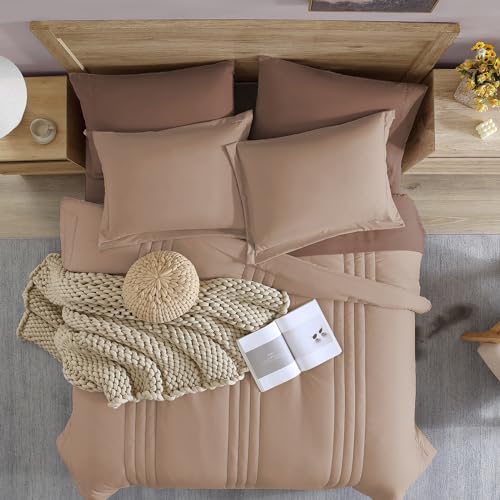 Monbix Full Comforter Set - 7 Pieces Rust Pink Bed in a Bag Full Size Bedding Sets with Comforters