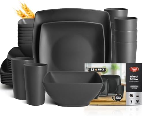 Teivio 32-piece Plastic Wheat Straw Square Dinnerware Set for 8