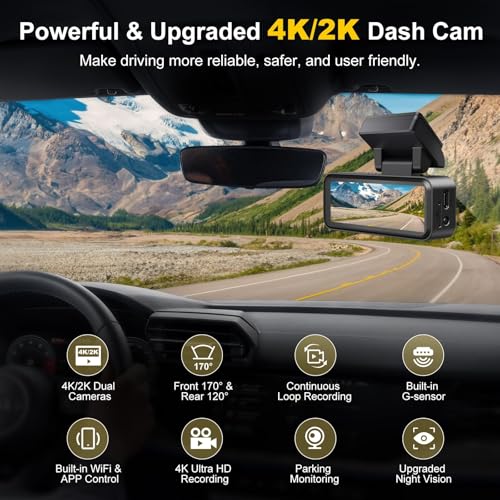 Dash Cam Front and Rear - 4K HD Dual Dash Camera for Cars