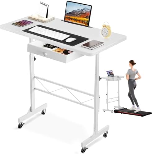 COMHOMA Small Standing Desk Adjustable Height Small Computer Desk Mobile Portable Rolling Laptop Table with Wheels 32" Computer Workstation Sit Stand Desks Portable Standing Table Treadmill desks