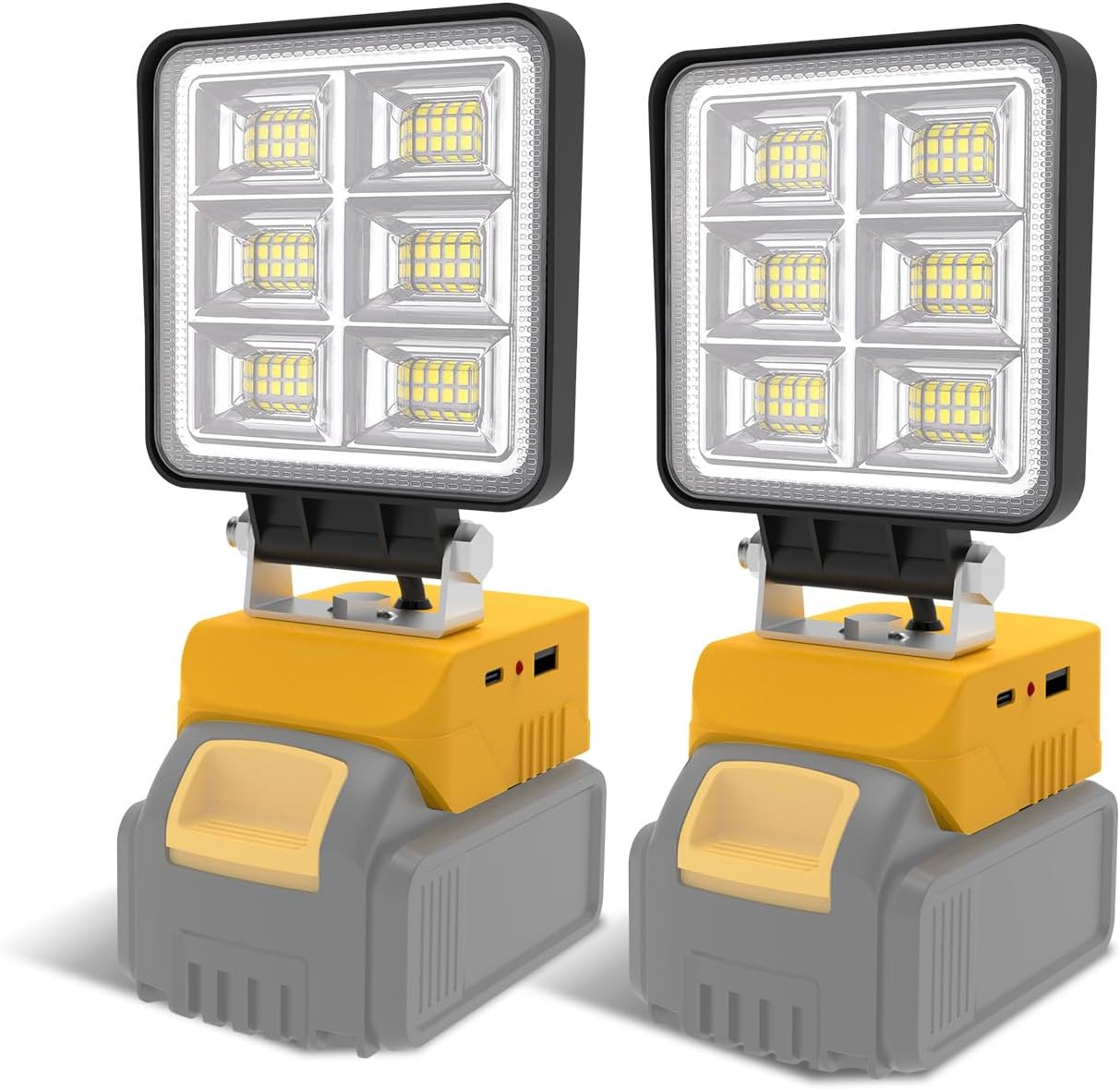T-SUN 2 Pack 20V Cordless LED Work Light for Dewalt Battery