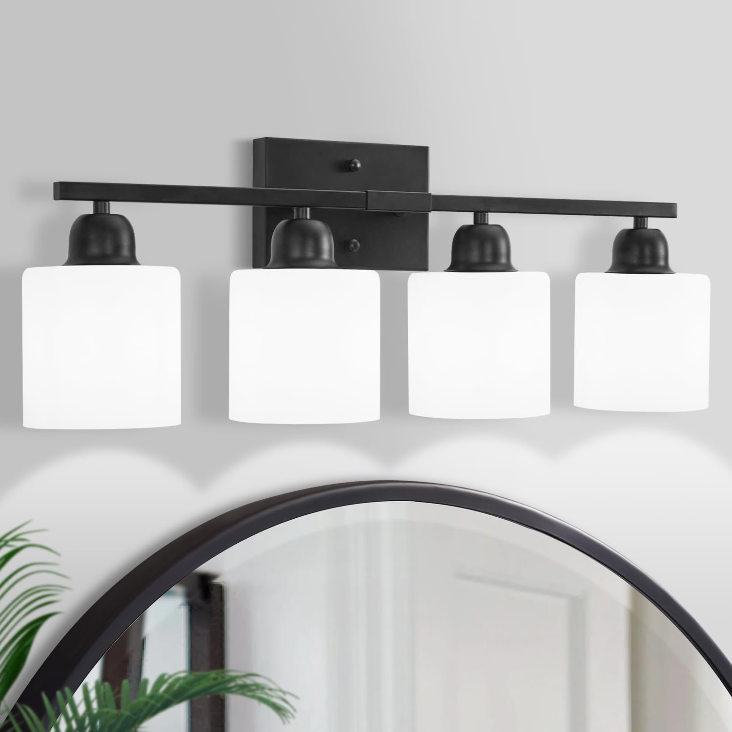 Bathroom Light Fixtures, 4-Light Modern Vanity Light with Milky White Frosted Glass Shades, E26 Socket Wall Lamp