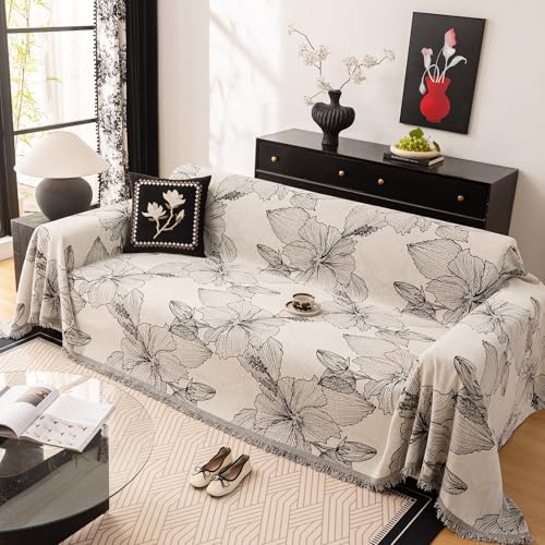 DREAMINGO Floral Couch Cover Vintage Sofa Covers for 2 Cushion Couch Chenille Jacquard Furniture Protector Slipcovers for Sectioanl L Shape