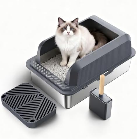 Stainless Steel Cat Litter Box with Lid Extra Large Metal Pan Tray with Enclosed High Sides for Big Cats Multi-Cat