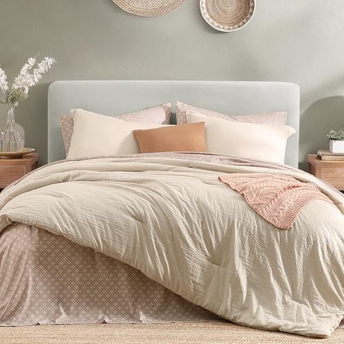 Monbix Full Size Comforter Set - 7 Pieces Oatmeal Prewashed Bed in a Bag Full Bedding Sets with Comforters