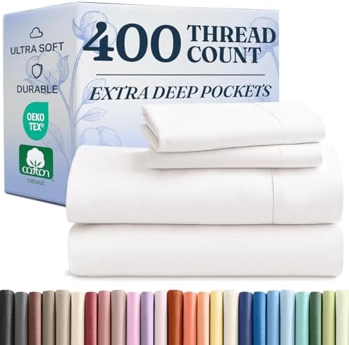 Extra Deep Pockets 400 Thread Count 100% Cotton 4 Piece California King Size Bedding Sheet Set - Breathable & Cooling - Hotel Luxury Bed Sheets Set- Soft