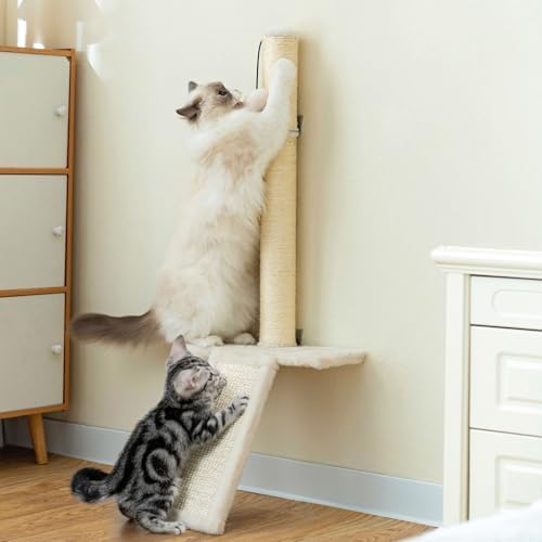 Wall-Mounted Cat Scratching Post – Space-Saving Sisal Scratcher with Ramp & Perch
