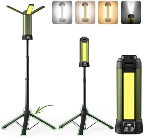 Rechargeable Camping Light with Stand - 54" Tall Cordless Work Light Portable USB Tripod Lights 2000 Lumen 3 Page Head with Carrying Bag for Outdoor Hiking Workshop Job Site(Green-B)