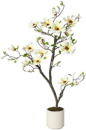 4 ft Faux Magnolia Plants Artificial Flower Trees Fake Plants For Yard Patio Home Office Arrangement Decor Indoor Outdoor Artificial Magnolia Tree Inc. 66 Realisc Flowers Vivid Leaves Mosses White Pot