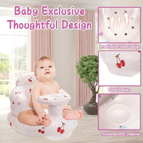 Inflatable Baby Seat for Babies Toddlers Floor Chair Sitting Up Pump Blow Up for Infant Ages 3 6 12 18 24 36 Months Boys Girls Portable Sofa Toys Activity (Lovely Cherry)
