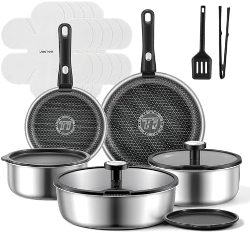 JEETEE Hybrid Stainless Steel Cookware Set with Detachable Handle