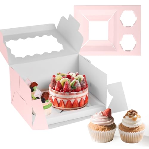 CHENZEM Pink 10 Packs cajas para postres and Cupcake Box 3 Holes Fit 2 Cupcakes and 1 Mini Cake Box with Clear Window and Stickers for Wedding Birthday Party Bakery pastry boxes(Pink