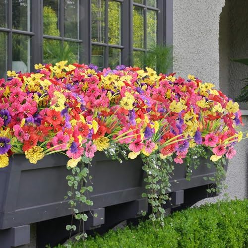 16 Bundles Spring Artificial Flowers for Outdoors UV Resistant Silk Fake Flower Outside for Plants Garden Porch Yard Home Decor (Colorful)