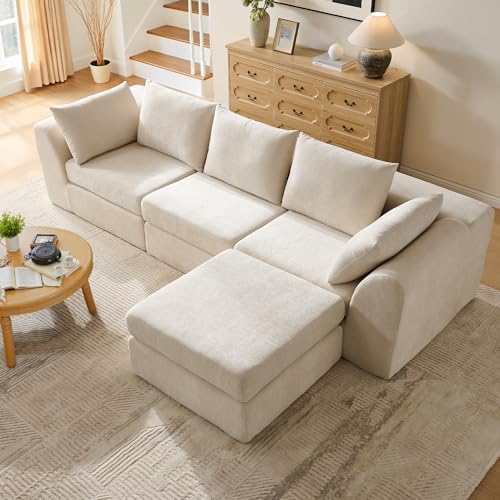 Modular Sectional Sofa 118" Cloud Couch L-Shaped Convertible Sleeper Sofa Bed with Movable Ottoman