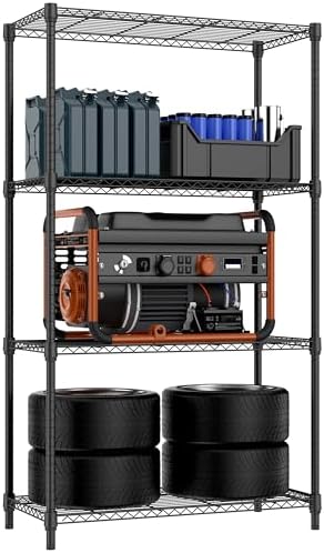 M MZG 1000 lbs 4 Tier Shelf Metal Storage Shelves Shelving Wire Rack Heavy Duty Closet Organizers for Garage Kitchen Bathroom Laundry Black 15.7" D x 33.5" W x 59.5" H
