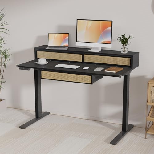 FLEXISPOT Q4 One-Piece Standing Desk with Rattan Drawers