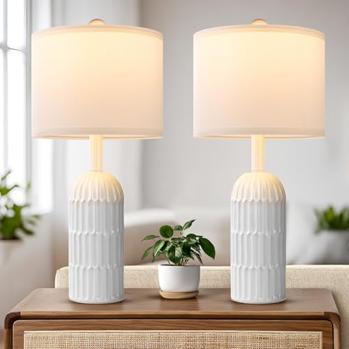 22.5" White Modern Table Lamps Set of 2 for Living Room Bedroom