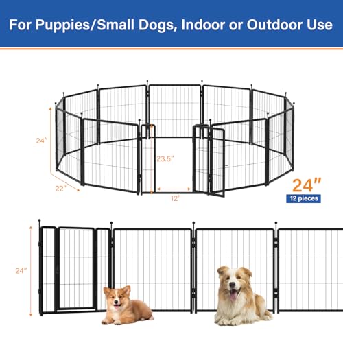 Dog Playpen 24 inch 12 Panels for Indoor & Outdoor Use – Heavy-Duty Metal Pet Fence with Ground Stakes
